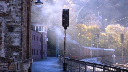 Bahnübergang Rübeland nach links geht es zu den Höhlen. Die Fahrt ging dann wieder zurück nach Blankenburg wo wir dann den letzten Bus nach Quedlinburg verpasst haben. Also warteten wir auf ein Taxi buw. Elke hat dann mit Taxiunternehmen tel. unsere Rückfahrt organisiert. In dieser Zeit konnte ich auch in blankenburg noch einmal die Lock in Fahrt auf Foto festhalten.