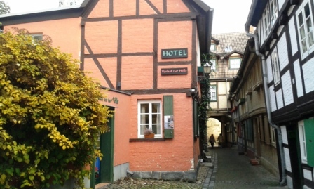 Gegen 13.30 Uhr waren wir dann wieder in Quedlinburg vom Bahnhof aus gingen wir zum Hotel zum Bären und aßen dort zu Mittag natürlich mit lecker Bierchen und zu Speisen gab es Wildgulasch mit Klößen und Rotkohl. Nach dem Essen gingen wir am Markt entlang und kamen zur Hölle.