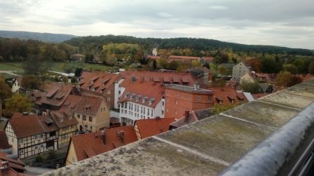 Nach dem Spielzeugmuseum ging es wieder ins Brauhaus Lüdde hier tranken wir wieder lecker Bierchen für mich gab es den Puparschknall ein Bier mit 1 vol % Alkohol und für Elke wie immer Schwarzbier zum Mittag gab es dann Bierschmorbraten auch ein sehr leckeres Essen nur witer zu empfehlen. Dann sind wir noch zum Schloss geschländert und wagten auch den Aufstieg. Hier oben machten wir Fotos und gingen dann ins Schloss und anschliessend in die Stiftskirche.
