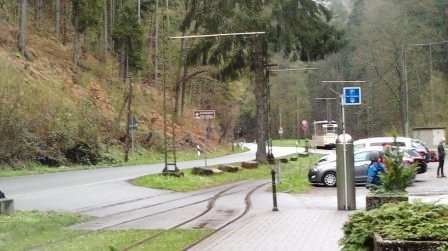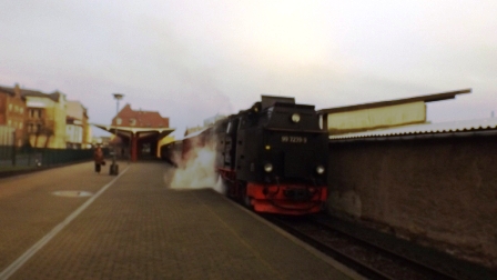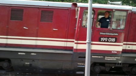 Bahnübergang Rübeland nach links geht es zu den Höhlen. Die Fahrt ging dann wieder zurück nach Blankenburg wo wir dann den letzten Bus nach Quedlinburg verpasst haben. Also warteten wir auf ein Taxi buw. Elke hat dann mit Taxiunternehmen tel. unsere Rückfahrt organisiert. In dieser Zeit konnte ich auch in blankenburg noch einmal die Lock in Fahrt auf Foto festhalten.