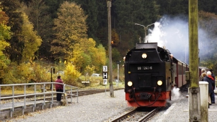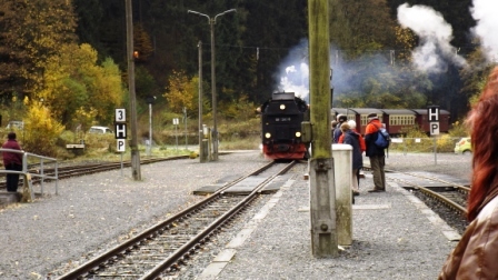 Aus Nordhausen kommend der Zug zum Brocken wir brauchen nicht umsteigen in Drei Annen Hohne.