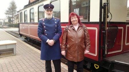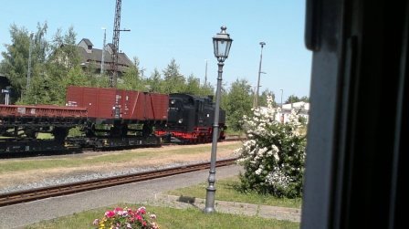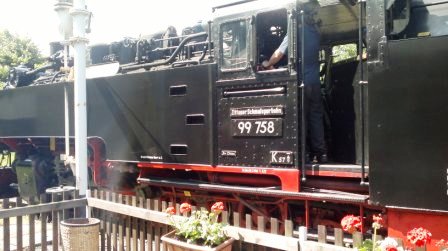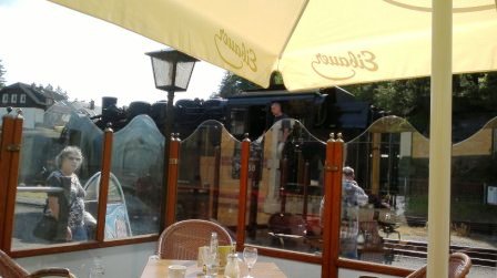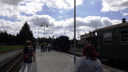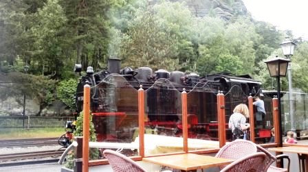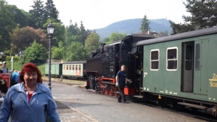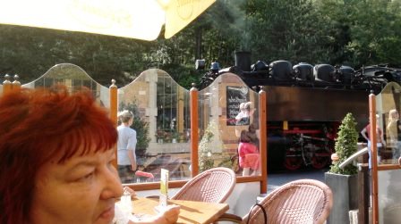 Wir trafen uns am Wasserhäuschen und begaben uns dann zum Bahnsteig und warteten hier auf den Zug nach Zittau, Elke hatte ja Plätze im Speisewagen Reserviert aber der war nur für uns da es wollten keine Leute weiter hier mitfahren und so bestellten wir gleich Getränke zum anstossen. Die Fahrt ging nach Zittau hin und zurück und Valentin erklärte uns das mit Dampflok fahren schon als Kind sein Traum war. Als wir dann wieder in Oybin angekommen waren gingen wir ins Hotel Nensch zum Mittagessen und nach dem Essen verabschiedeten sich Konstantin, Manja und Valentin von uns um sich wieder auf die Heimreise zu machen, wir gingen dann zum Bahnhof runter und nahmen den nächsten Zug nach Zittau ntürlich auch wieder im Speisewagen und anschliessend besuchten wir wieder das Cafe' Engel um den Abend ausklingen zu lassen wir nahmen noch einen kleinen Imbis mit und liessen dann den Abend gemütlich im Wasserhäuschen auf der Terrasse ausklingen.
