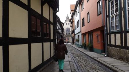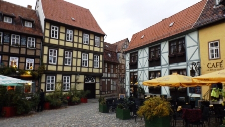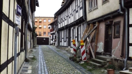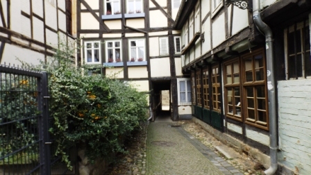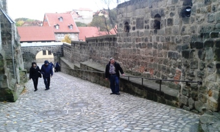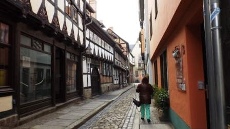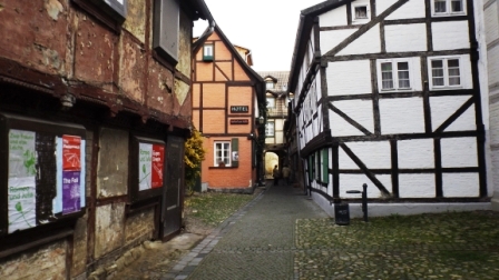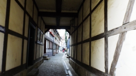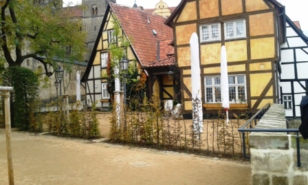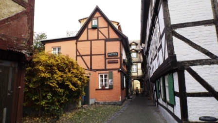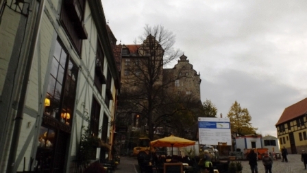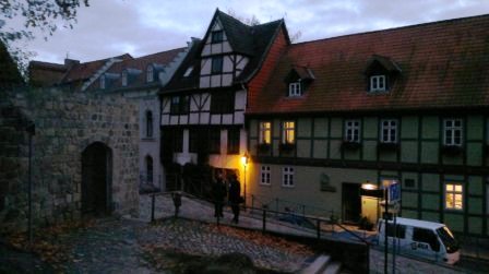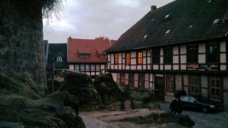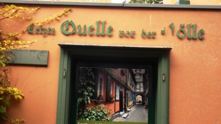 Gegen 13.30 Uhr waren wir dann wieder in Quedlinburg vom Bahnhof aus gingen wir zum Hotel zum Bären und aßen dort zu Mittag natürlich mit lecker Bierchen und zu Speisen gab es Wildgulasch mit Klößen und Rotkohl. Nach dem Essen gingen wir am Markt entlang und kamen zur Hölle.