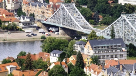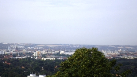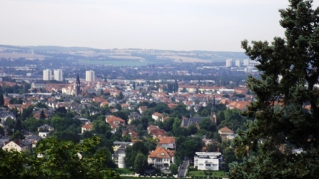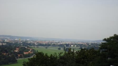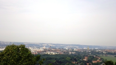 Ausblick vom Caffee Schwebebahn auf Dresden gezoomt das Wetter war zu schön um aus dem Schatten zu gehen.