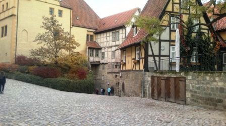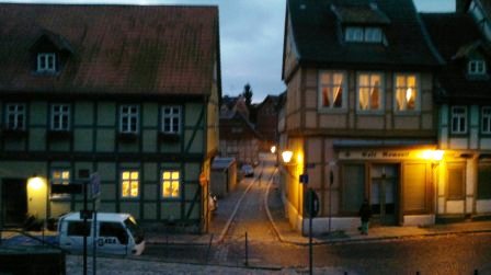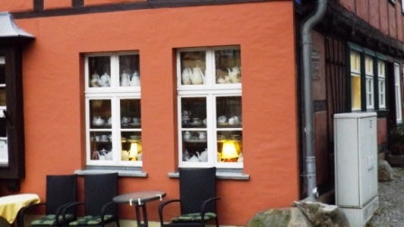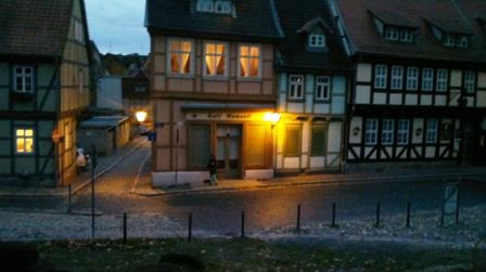 Huete schlafen wir mal etwas länger Elke bis 7 Uhr und ich war schon um 6 Uhr zu gange Fotos auf dem Lappy zu bearbeiten. Gegen 8 Uhr machten wir uns auf den weg zum Frühstücksraum. Nach dem Frühstück packten wir unsere Rückentüten mit dem nötigsten Untensilien Taschntücher und Feuchttücher und Zigaretten in Elkes Ruck... in meinem kam nur die Kamera und das Zubehör weil wir ja noch Andenken etc. mitnehmen wollenso machten wir uns ca. 9,30 Uhr auf den zum Schloss (den kürzeren natürlich) um 10 Uhr wollten wir mit der "Bimmelbahn" fahren wir waren rechtzeitig an der Haltestelle angekommen konnten noch eine Zigarette rauchen bevor die Bahn eintraf einige Leute kamen dann noch dazu und es war eine Reisegruppe angesagt, die sich aber etwa 10 Minuten verspätet hatte, wir warteten und als die Gruppe Behinderter eingestiegen war ging die Fahrt los durch die Gassen und Strassen von Quedlinburg der Fahrer erklärte uns die Sehenswürdigkeiten und als wir dann am markt wieder angekommen waren machten wir uns auf den weg zum Spielzeugmuseum in dem ich meine Cam wieder reichlich strapazierte.