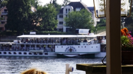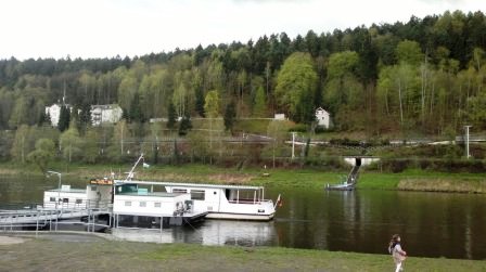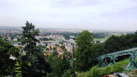 Wir verbrachten hier sehr schöne Stunden, am Freitag Abend haben wir hier zu Abend gespiesen vom feinsten natürlich dazu Radeberger Pilsener in mengen aber so das wir noch den Heimweg schafften denn gleich nach dem Frühstück wollen wir mit der Standseilbahn und der Schwebebahn fahren. Am Samstag ging es dann los gegen 9,00 Uhr gingen wir gemütlich in der Prallen Sonne zuerst zur Schwebebahn die fährt aber erst ab 9,45 Uhr also kurz entschlossen zur Standseilbahn zurück und mit einem noch angenehm leeren Wagen nach oben und gleich wieder zurück und dann zur Schwebebahn wo wir jetzt auch nicht lange warten musten wir schwebten nach oben und blieben hier einige Zeit im Schatten und haben einen sehr Schönen Platz im Caffee Schwebebahn mit einen noch schöneren Ausblick zur Elbe runter ergattert hier blieben wir auf ein paar kleine Bierchen und ich machte einige kurze Videos von der Elbe und der Umgebung machte ich einige Fotos die nun folgen.