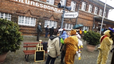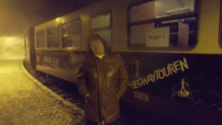 Elke auf dem Frostigen Bloxberg Bahnsteig 3 vor unserem Wagon.