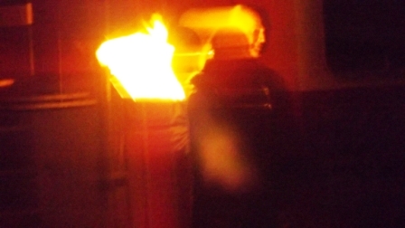 Vom Feuerwerk habe ich nur Video´s aufgenommen aber die werde ich hier später noch einbinden. Vom Zünden hab ich aber Fotos gemacht,der Heizer macht den "Fakir".Mit einer Fackel wird das Feuerwerk gezündet.