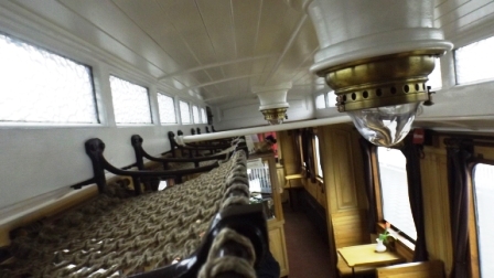 sehr schön Restauriert ist der Salonwagen trotz der alten, neu gebauten Holzsitzbänke die wirklich auch ohne Polster sehr bequem sind und auch die Handgeknüpften Gepäcknetze sind eine Augenweide so wurde der Salonwagen vom ersten Tag an unser Lieblingswagon.