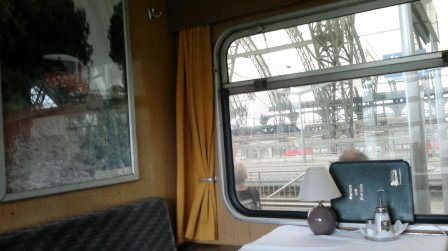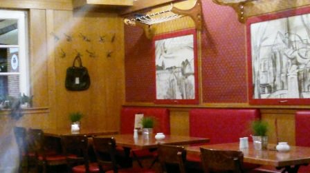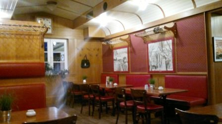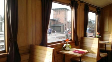 Hier sitzt mann wie in einem alten Bahnwagon die Einrichtung ist sehr schön