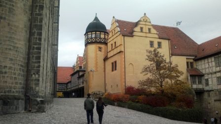 Nach dem Spielzeugmuseum ging es wieder ins Brauhaus Lüdde hier tranken wir wieder lecker Bierchen für mich gab es den Puparschknall ein Bier mit 1 vol % Alkohol und für Elke wie immer Schwarzbier zum Mittag gab es dann Bierschmorbraten auch ein sehr leckeres Essen nur witer zu empfehlen. Dann sind wir noch zum Schloss geschländert und wagten auch den Aufstieg. Hier oben machten wir Fotos und gingen dann ins Schloss und anschliessend in die Stiftskirche.