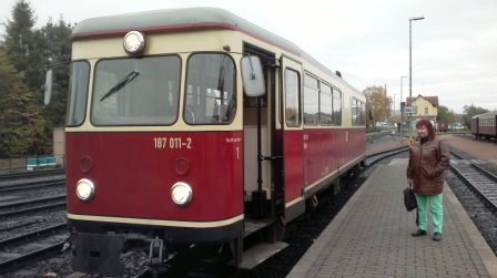 Morgens gegen 8 Uhr fuhren wir mit dem Taxi nach Gernrode zum Bahnhof, heute wollen wir nur nach Eisfelder Talmühle fahren und dann Mittags in Quedlinburg speisen. 8,46 ging es los mit dem Triebwagen nach ETm, wir hatten gut gefrühstückt und so konnten wir die etwas über vier Stunden gut überbrücken.